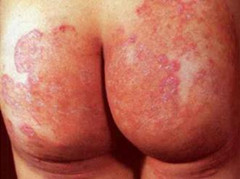 医师说,股癣出现后的症状一般都是在大腿内侧接近阴部的位置出现一个或是数个红斑,以后会逐渐的扩大成为环状,病损部位的皮肤边界比较清楚,皮损扩大以后会发展到外阴以及肛门的周围,患者会感觉到明显的瘙痒。