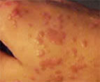 以棘层明显增厚为主,表皮脚增宽,表皮浅层明显空泡化。